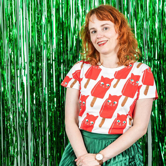 A print designer by trade, cat mom/kid mom Kat founded Baby Cats when she discovered a lack of gender-neutral clothes for her son. With her love of bright colors and happy prints, Baby Cats celebrates cat lovers and kids of all ages (adults included!).![]()